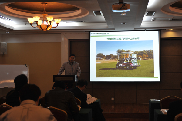會議第二項內(nèi)容由綠友集團OHEV事業(yè)部張得玉先生匯報鋰電系統(tǒng)在高爾夫球場上的應(yīng)用。這是個全新的課題,大家聽得非常認(rèn)真。在高爾夫業(yè)內(nèi)現(xiàn)階段使用的都是鉛酸電池,張得玉先生從鉛酸電池對環(huán)境的污染和鉛酸廢舊電池如何處理,以及鉛酸電池性能與鋰電電池性能的巨大差距等幾個方面匯報了行業(yè)內(nèi)目前的狀況。由于鉛酸電池本身性能上有缺陷,使用壽命短,業(yè)內(nèi)以后的發(fā)展趨勢一定會向著更加環(huán)保、安全和性能卓越方面發(fā)展,綠友集團走在了行業(yè)的前面。