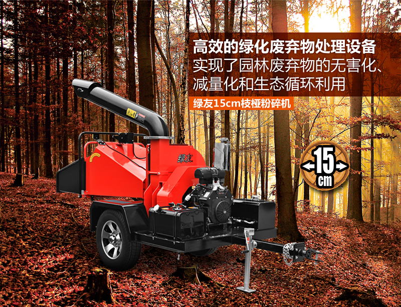 綠友粉碎機配備科勒25hp動力,全自動液壓進料系統,可根據進料樹枝的大小自動調節進料。經特殊處理的切屑刀片,結實耐用并可多次修磨,降低使用成本。機器性能穩固,操作修理簡便。