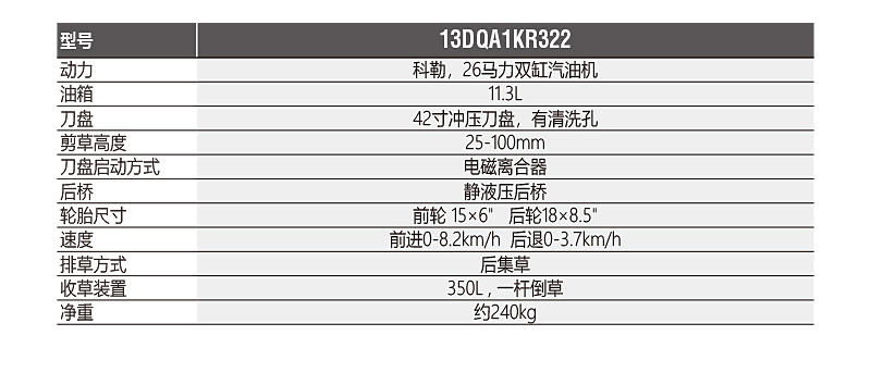1. 科勒26馬力雙缸汽油機,油箱11.3L