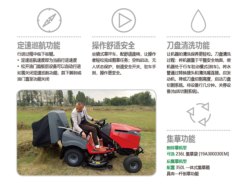 6. 標配一桿倒草,350L集草裝置