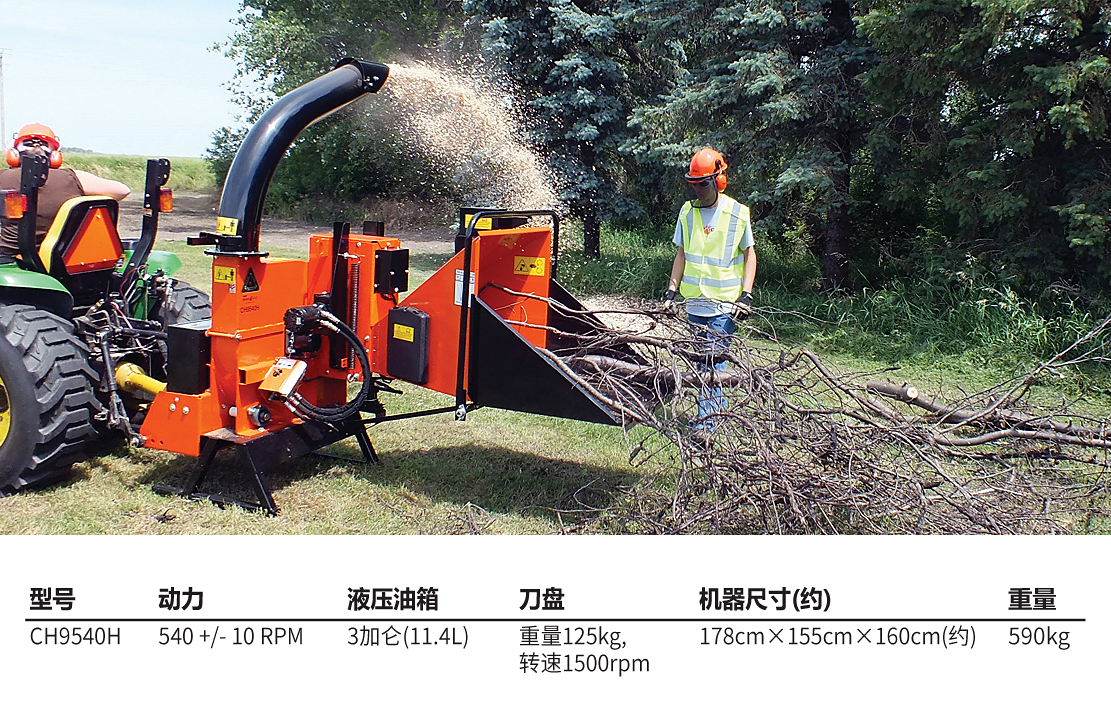 老熊(BEARCAT)品牌樹枝粉碎機,采用PTO驅動,適合苗圃等場所使用。推薦拖拉機35-60馬力,聯接軸直徑3.49cm(6齒);最大切削直徑9"(23cm)。